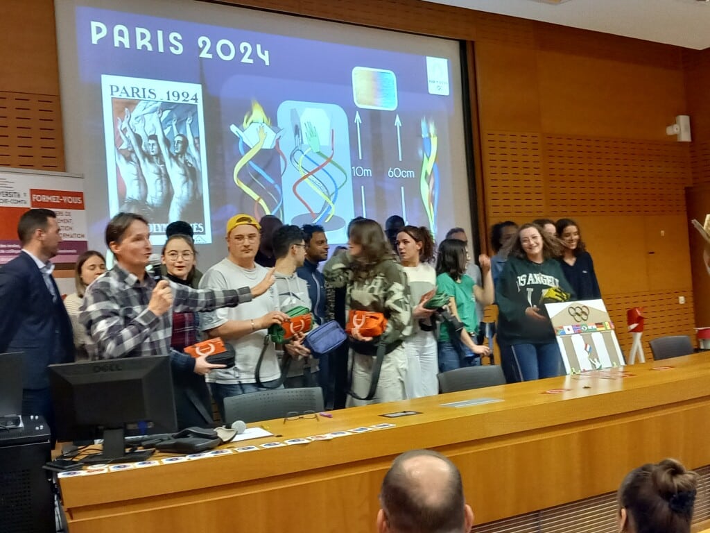 L’idée est de rassembler des étudiants (scolaires et apprentis) de tous les DN MADe Franc-Comtois pour relever un challenge. Les équipes sont constituées d’un étudiant de chaque spécialité de DN MADe et le thème “Olympisme et paralympisme – JO 2024 à Paris”. Les étudiants ne se connaissaient pas avant et en deux demi-journées, ils ont élaboré des projets qui reprennent les valeurs de l’olympisme. Au CFA académique, ce sont les apprentis de DN MADe mention Graphisme Plurimédias de l’UFA du lycée J. Haag site Marceau et de DN MADe Objet mention Concept mobilier et pièce d’exception de l’UFA du lycée P. Vernotte qui ont participé.